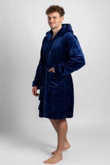 Dospělé dupačky Pánský župan s kapucí tmavě modrý