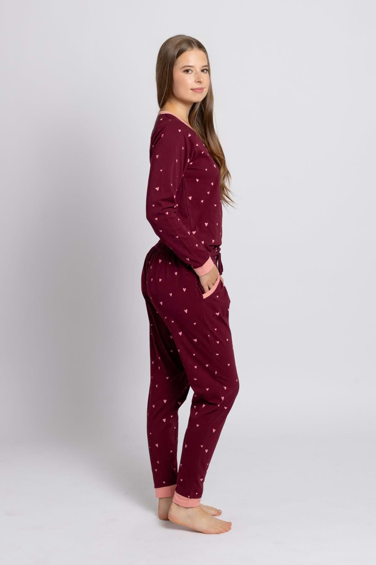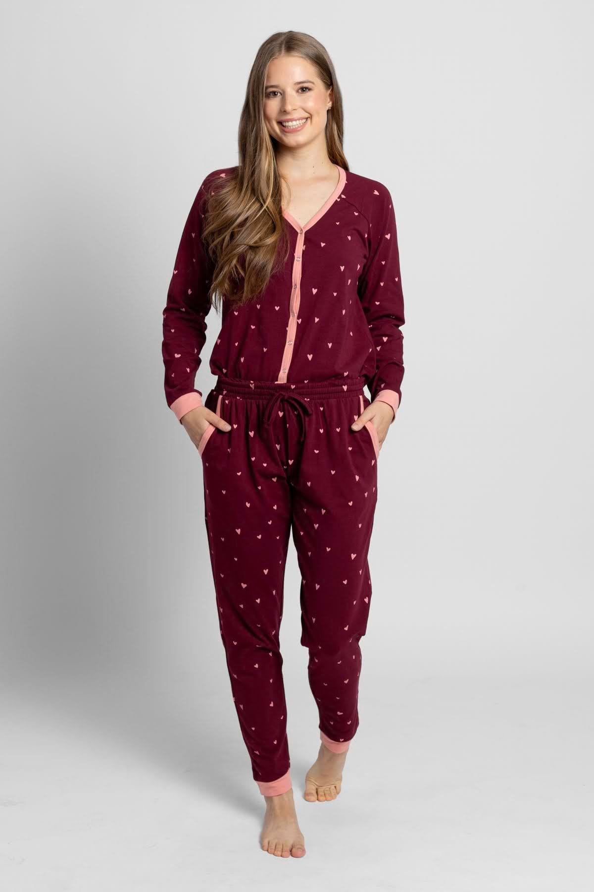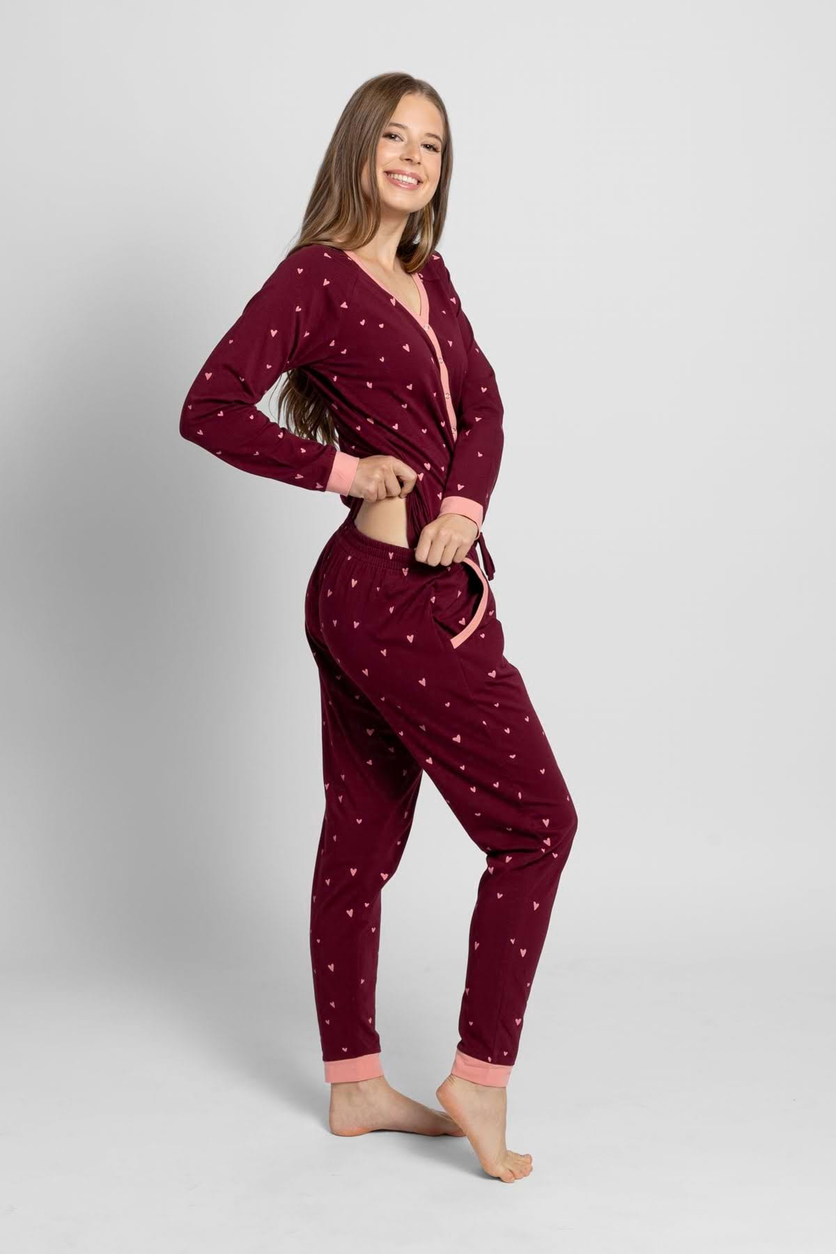 pohodlný dámský overal na spaní; vyspíš se v něm dorůžova, protože nikde neškrtí a je v něm teplo; v zadní části má vychytaný otvor, který stačí stáhnout a v noci se v klidu vyčůráš, aniž by ses musela vysvlékat; extra měkká bavlna o gramáži 180 g/m2; složení: 95% bavlna a 5% elastan; velikosti odpovídají standardním konfekčním velikostem; na fotkách: Amélie (171 cm a 52 kg) má velikost S