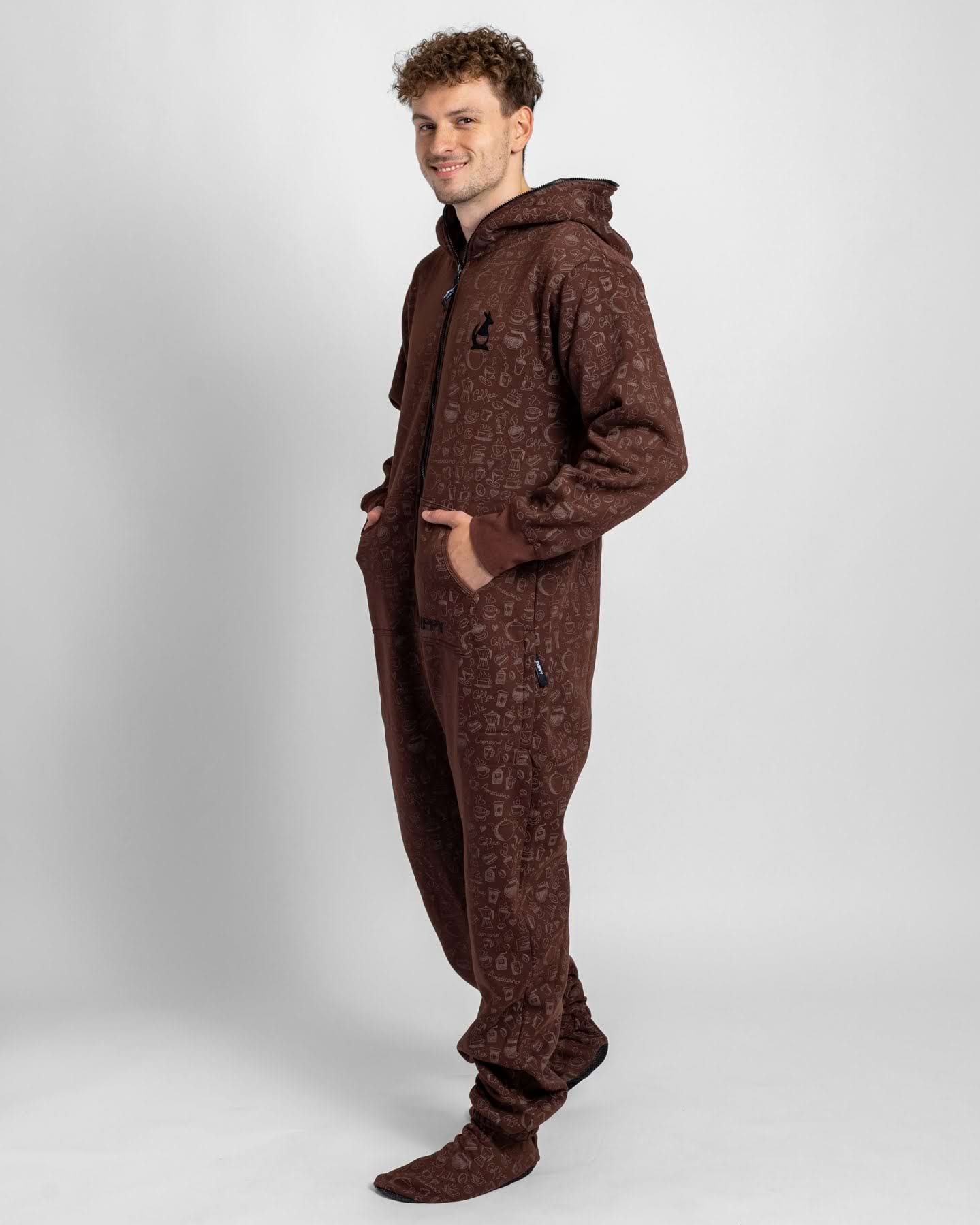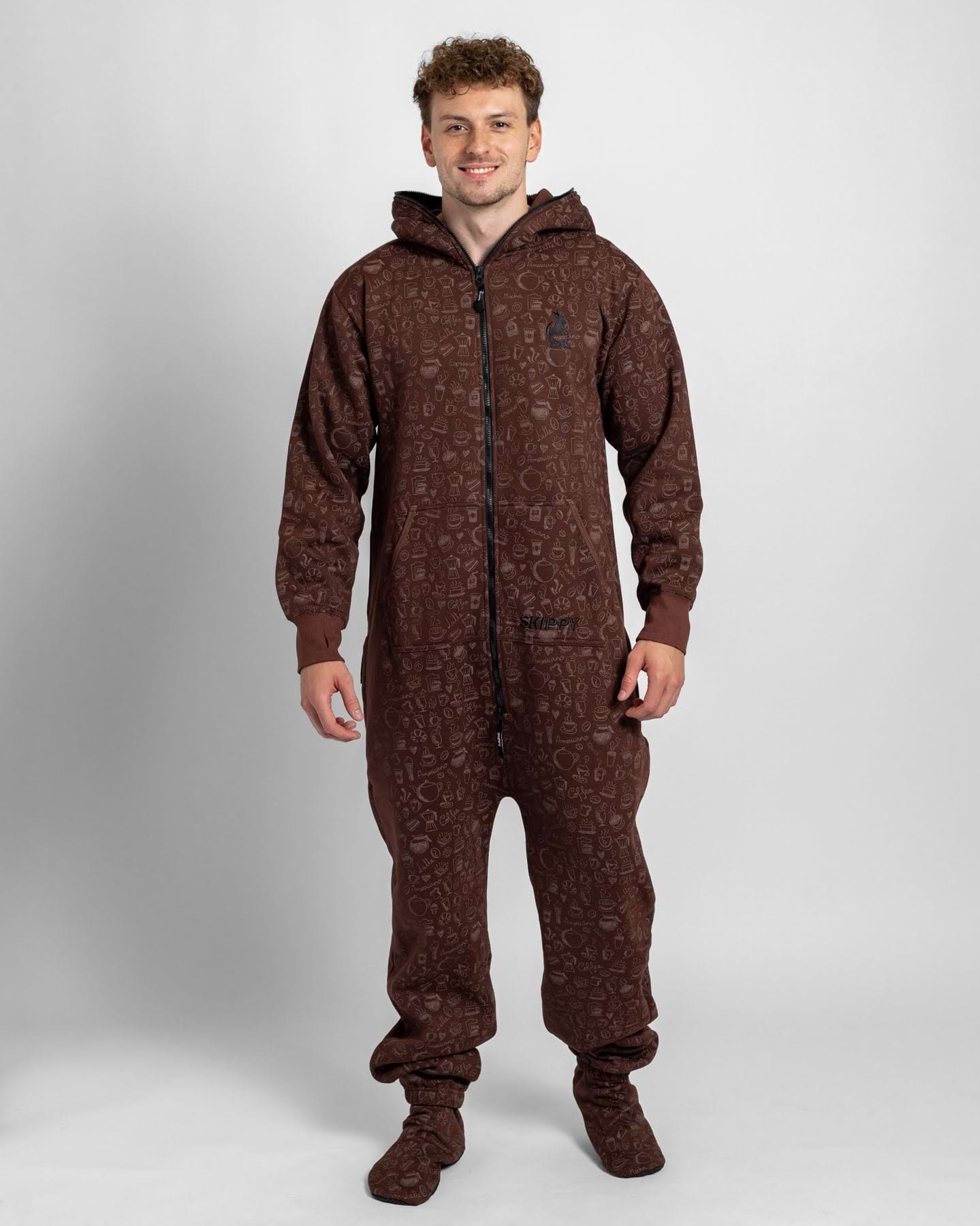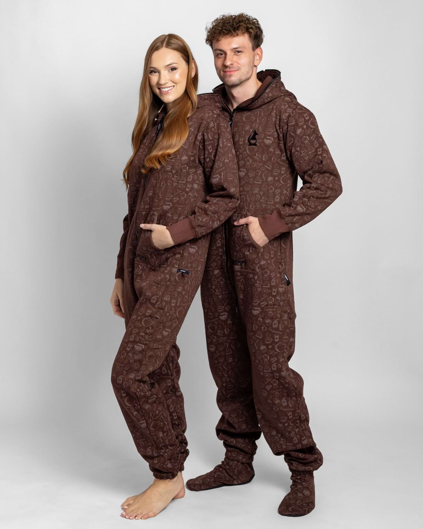 stylový overal na domácí lenošení nebo bláznivou párty; příjemně měkká bavlna o gramáži 290 g/m2 (složení: 60% bavlna a 40% polyester); dlouhý dvoucestný zip, který jde zapnout až do kapuce; kapsa na přední straně (klokanka), dvě postranní kapsy na zip a kapuce; navíc zdarma: pár bačkor s protiskluzovou podrážkou; na fotkách: Jirka (185 cm a 85 kg) má velikost L, Jana (177 cm a 62 kg) má velikost S