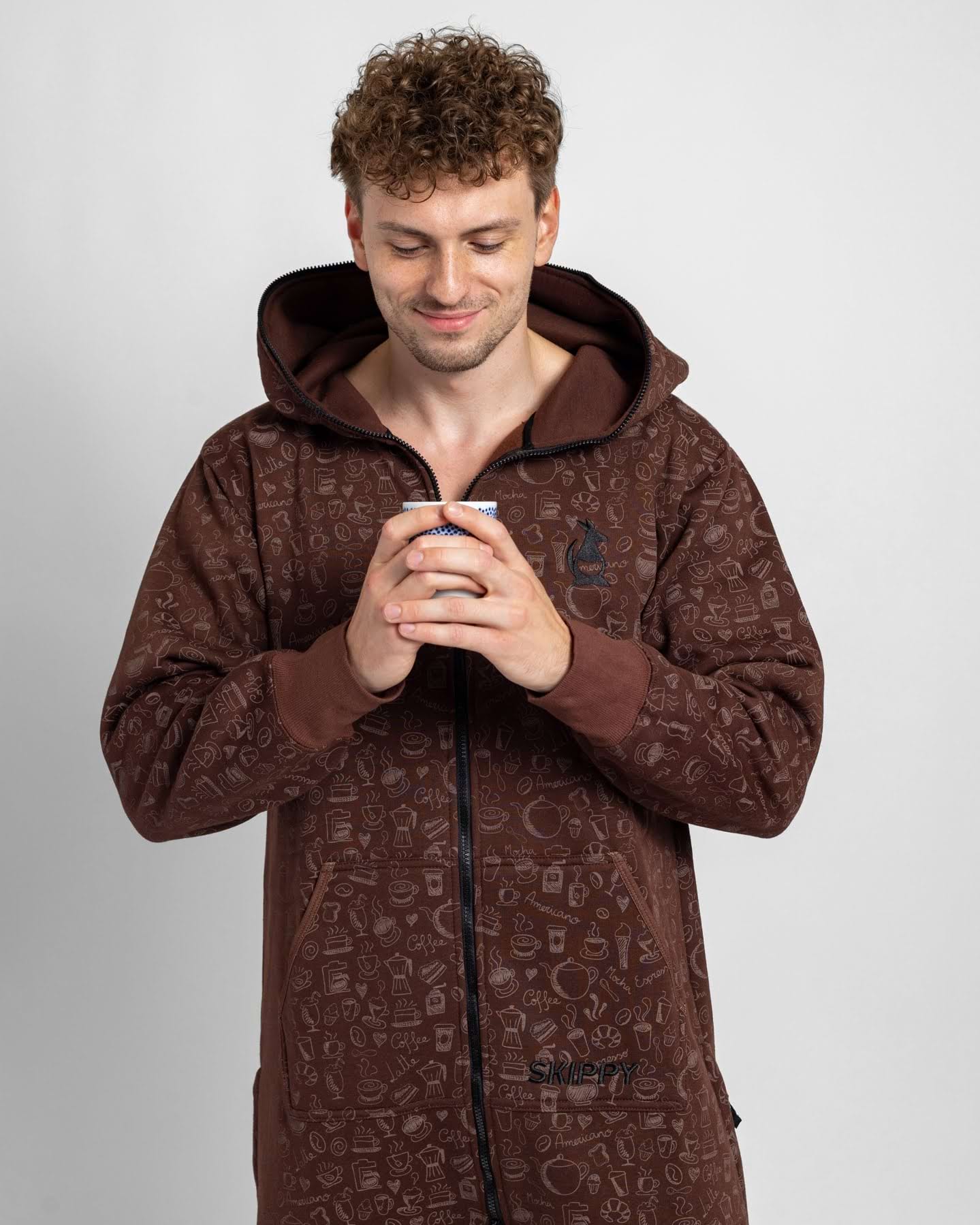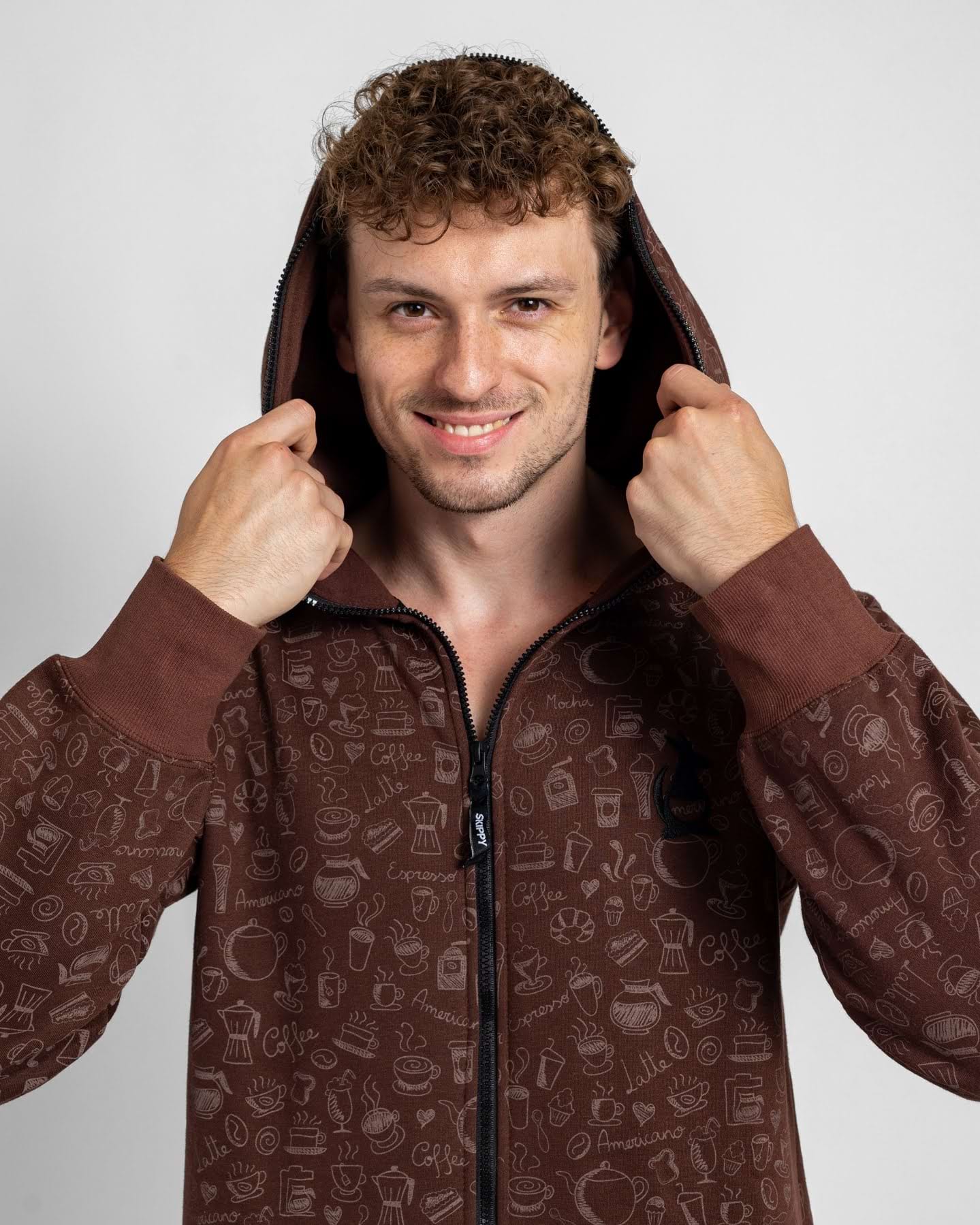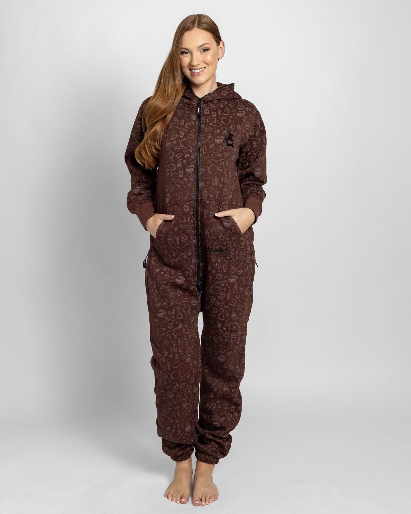 stylový overal na domácí lenošení nebo bláznivou párty; příjemně měkká bavlna o gramáži 290 g/m2 (složení: 60% bavlna a 40% polyester); dlouhý dvoucestný zip, který jde zapnout až do kapuce; kapsa na přední straně (klokanka), dvě postranní kapsy na zip a kapuce; navíc zdarma: pár bačkor s protiskluzovou podrážkou; na fotkách: Jirka (185 cm a 85 kg) má velikost L, Jana (177 cm a 62 kg) má velikost S