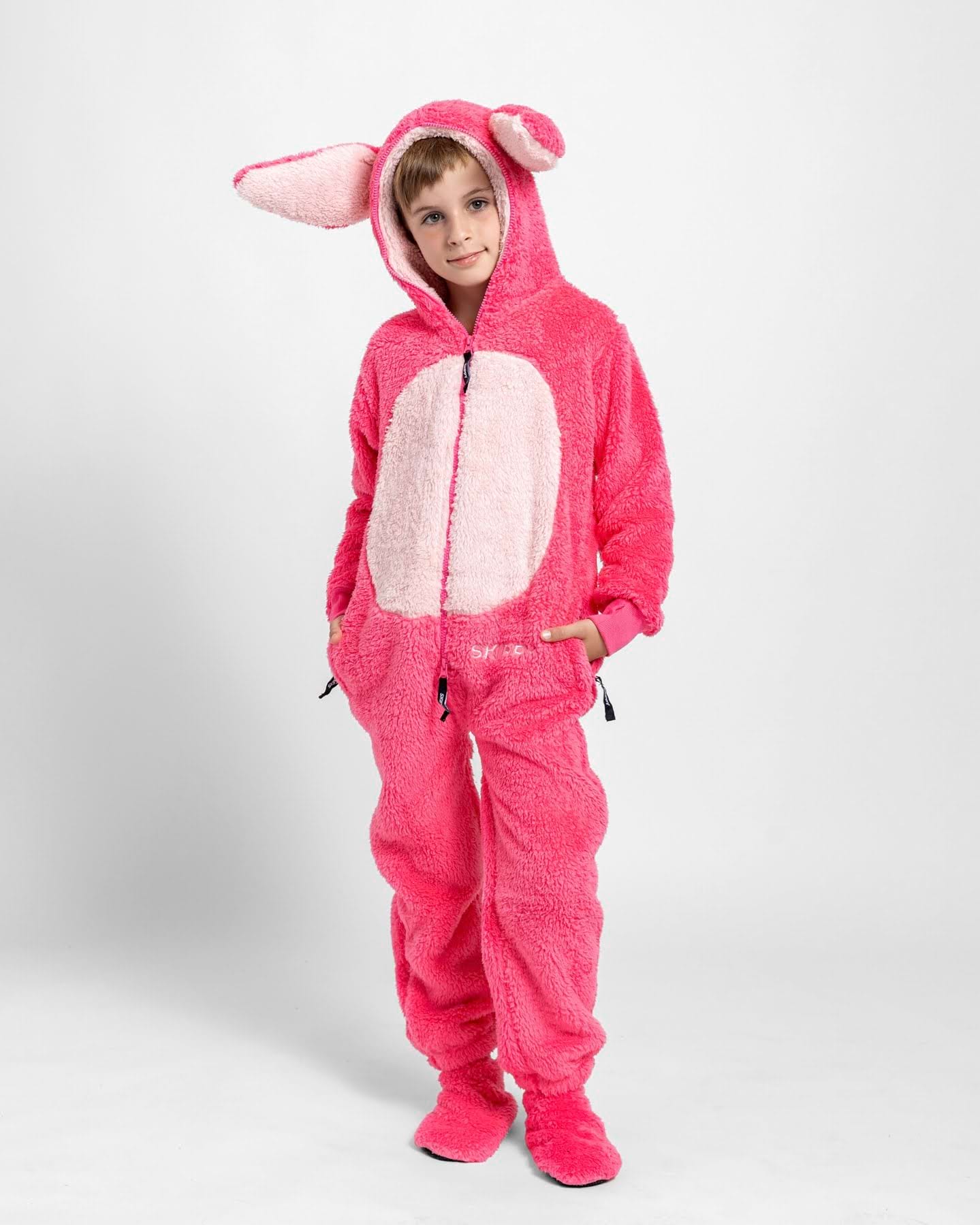stylový dětský overal na domácí lenošení nebo dětskou párty; 100% polyester o gramáži 330 g/m2 – měkoučká a silná látka ve stylu plyšového medvídka; dlouhý dvoucestný zip, který jde zapnout až do kapuce; dvě postranní kapsy na zip a kapuce na zip; navíc zdarma: pár bačkor s protiskluzovou podrážkou; na fotkách: Franta (135 cm) má velikost 130; koukni i na Angel dupačky pro dospěláky