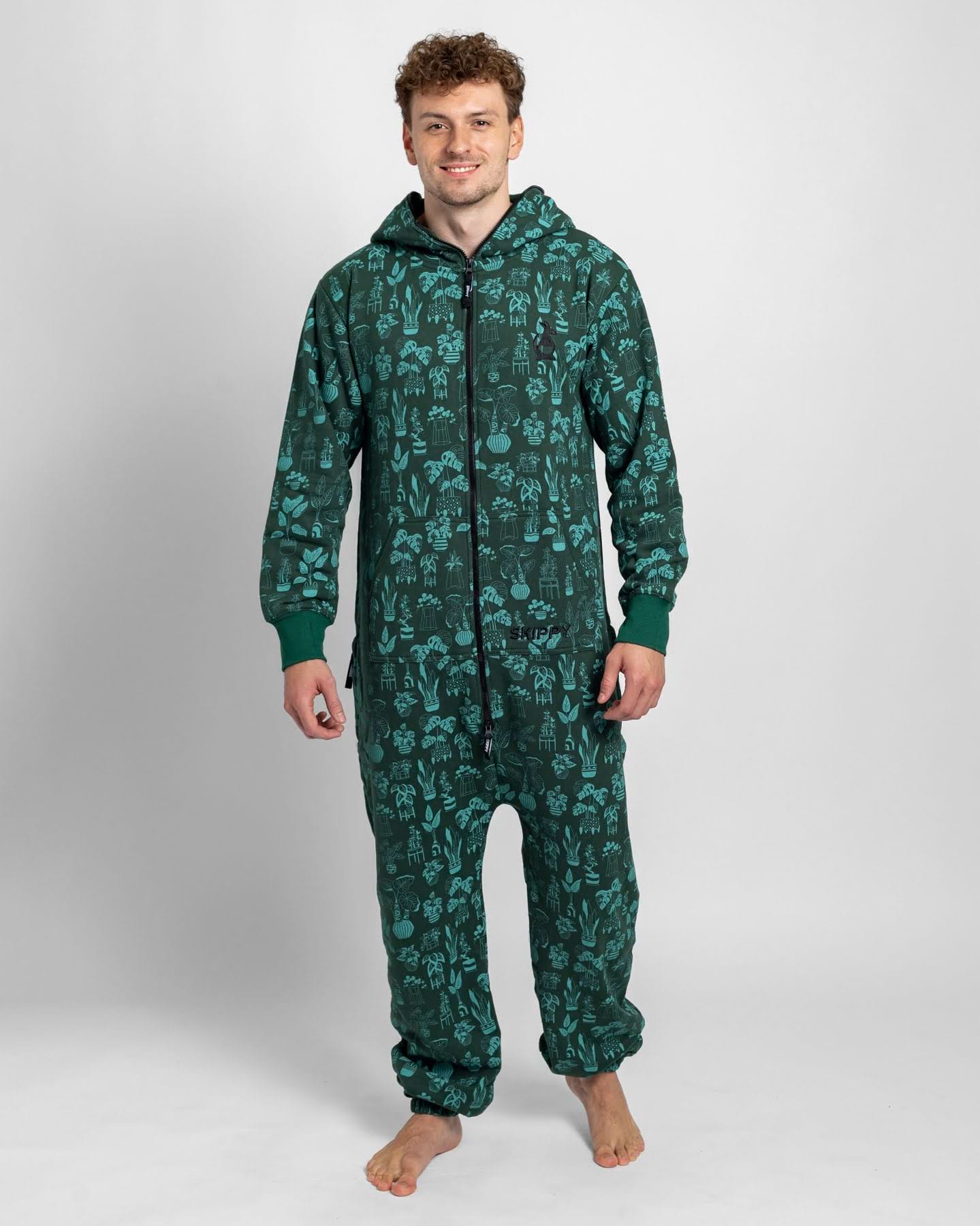 stylový overal na domácí lenošení nebo bláznivou párty; příjemně měkká bavlna o gramáži 290 g/m2 (složení: 60% bavlna a 40% polyester); dlouhý dvoucestný zip, který jde zapnout až do kapuce; kapsa na přední straně (klokanka), dvě postranní kapsy na zip a kapuce; navíc zdarma: pár bačkor s protiskluzovou podrážkou; na fotkách: Jirka (185 cm a 85 kg) má velikost L, Jana (177 cm a 62 kg) má velikost S