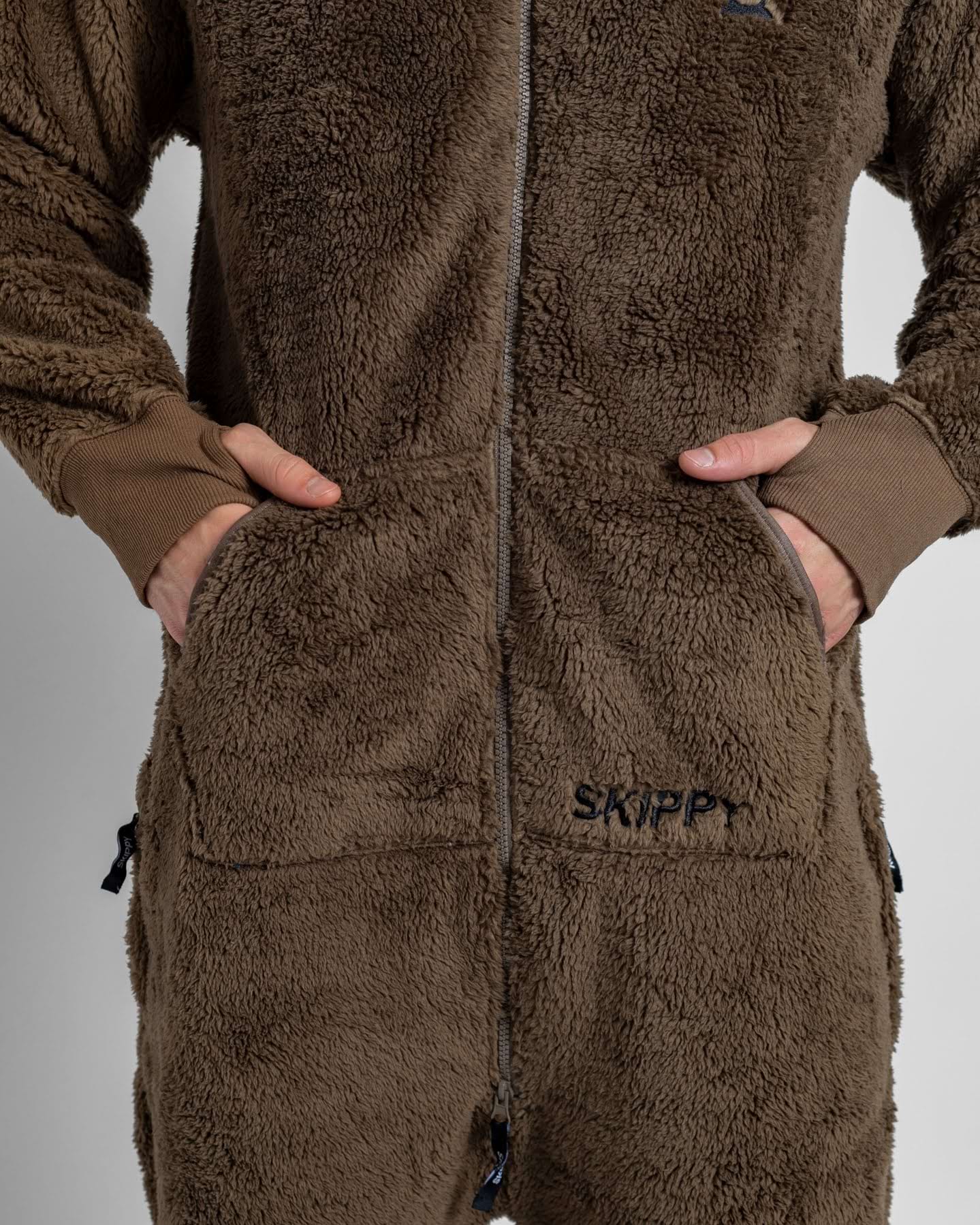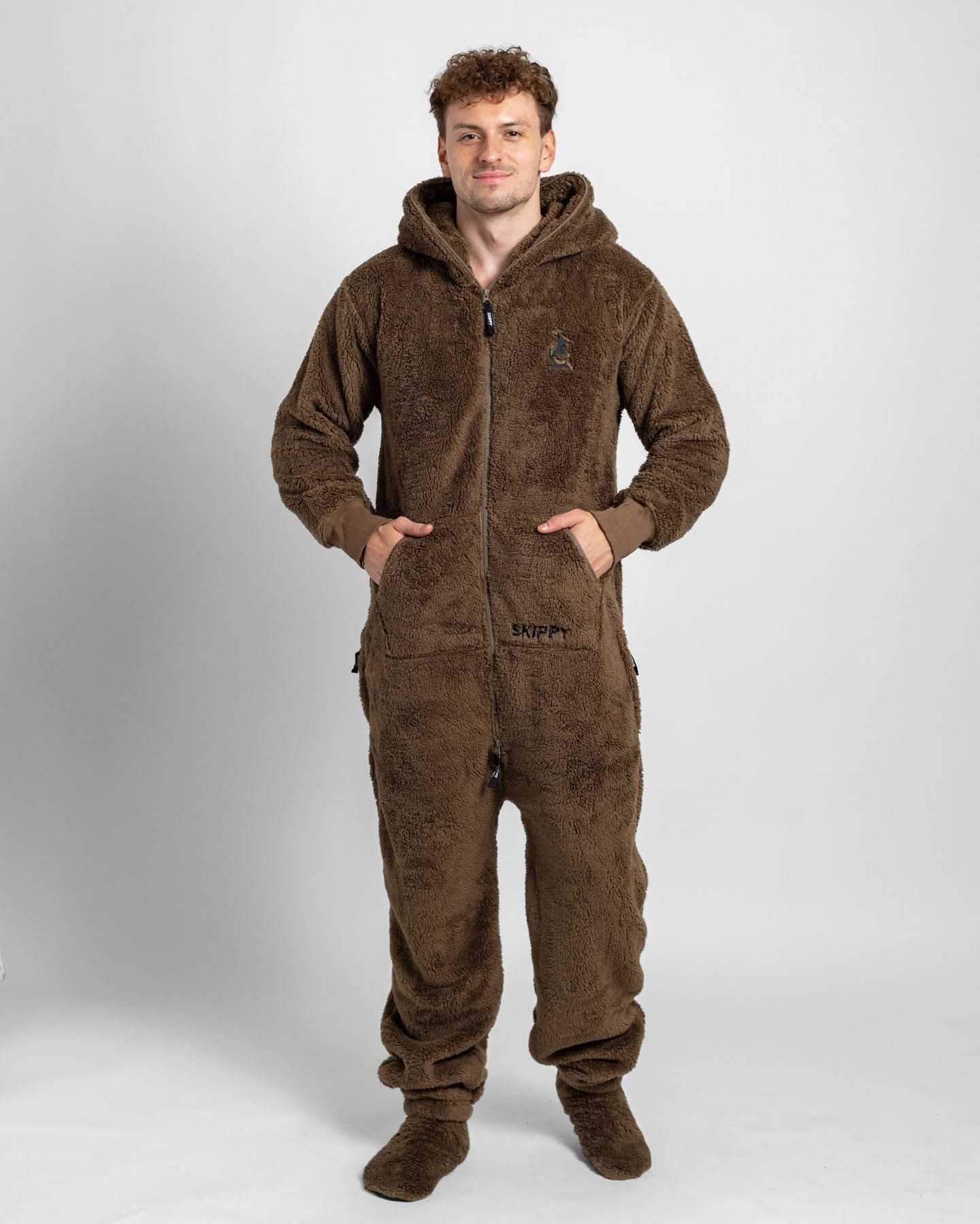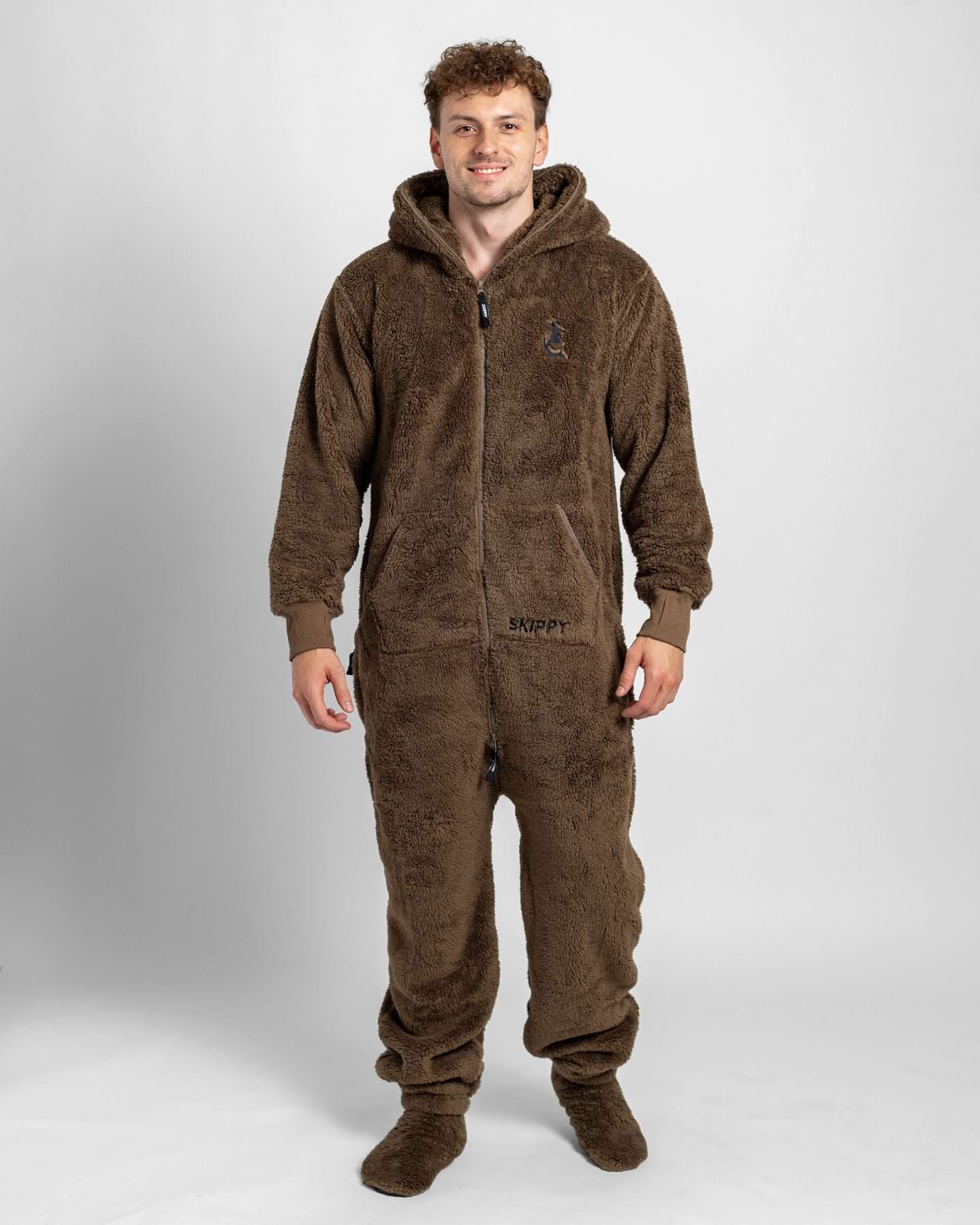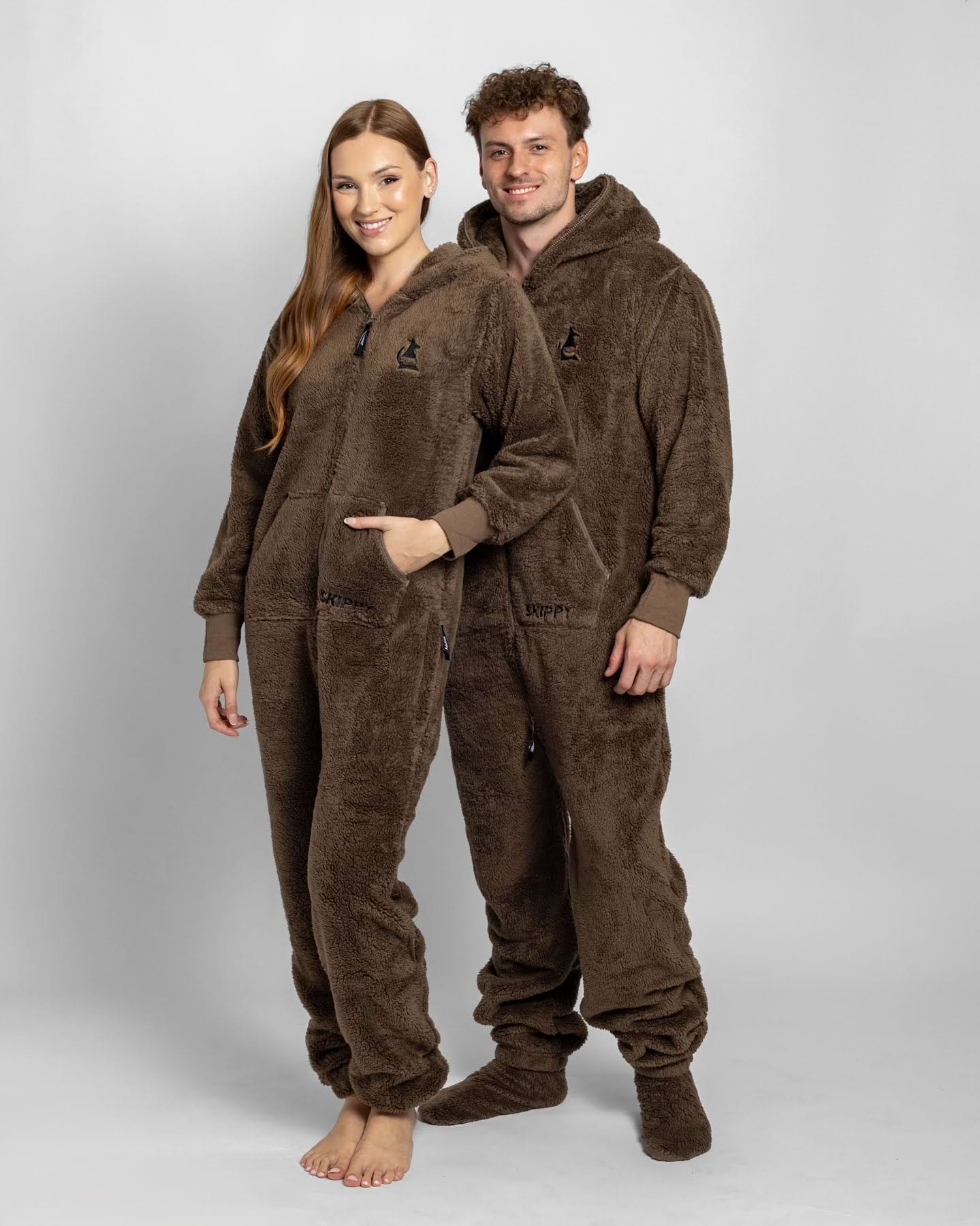 stylový overal na domácí lenošení nebo bláznivou párty;100% polyester o gramáži 330 g/m2 – měkoučká a silná látka ve stylu plyšového medvídka;dlouhý dvoucestný zip, který jde zapnout až do kapuce;kapsa na přední straně (klokanka), dvě postranní kapsy na zip a kapuce;navíc zdarma: pár bačkor s protiskluzovou podrážkou;na fotkách: Jirka (185 cm a 84 kg) má velikost L, Jana (177 cm a 62 kg) má velikost S