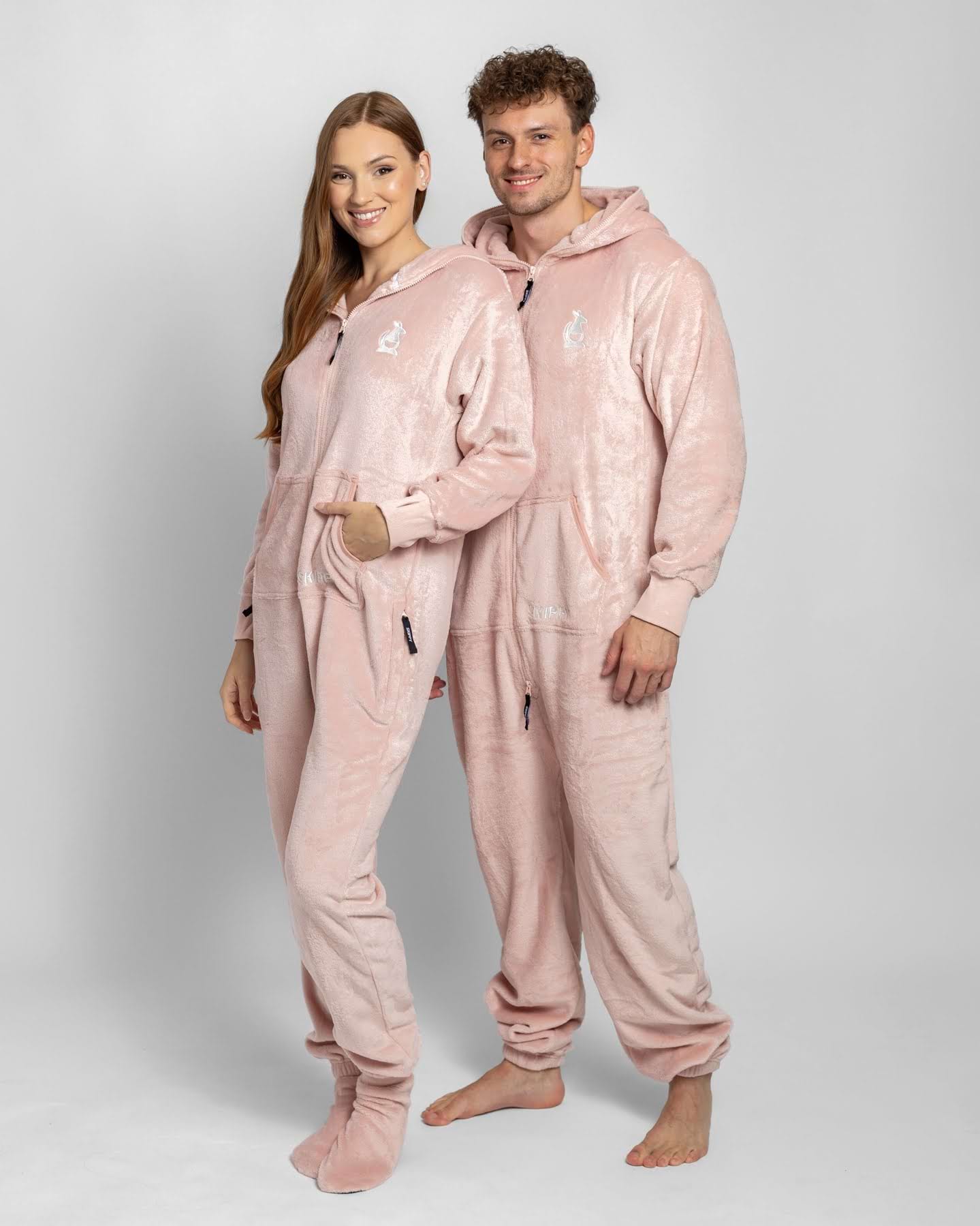 stylový overal na domácí lenošení nebo bláznivou párty; příjemně hřejivá a plyšová velurová látka o gramáži 200 g/m2 (100% polyester); oproti teddy dupačkám nejsou tyto velurové až tolik teplé; dlouhý dvoucestný zip, který jde zapnout až do kapuce; kapsa na přední straně (klokanka), dvě postranní kapsy na zip a kapuce; navíc zdarma: pár bačkor s protiskluzovou podrážkou; na fotkách: Jirka (185 cm a 85 kg) má velikost L, Jana (177 cm a 62 kg) má velikost S