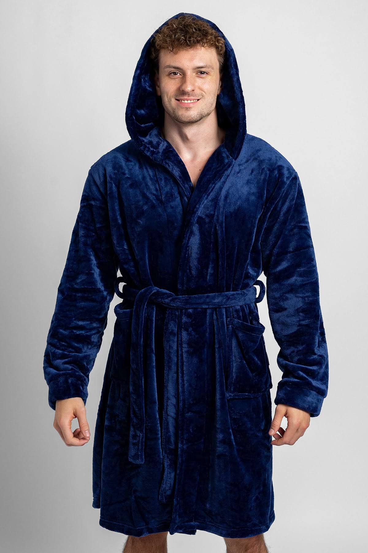 Dospělé dupačky Pánský župan s kapucí tmavě modrý